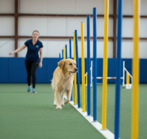 Durch Sprünge in angepasster Höhe, fließende Bögen, sowie gezielte Konzentrations-Übungen lernt der Hund, seinen Körper bewusst einzusetzen und Bewegungen sicher und kontrolliert auszuführen. Gleichzeitig wird die Zusammenarbeit zwischen Mensch und Hund gestärkt.